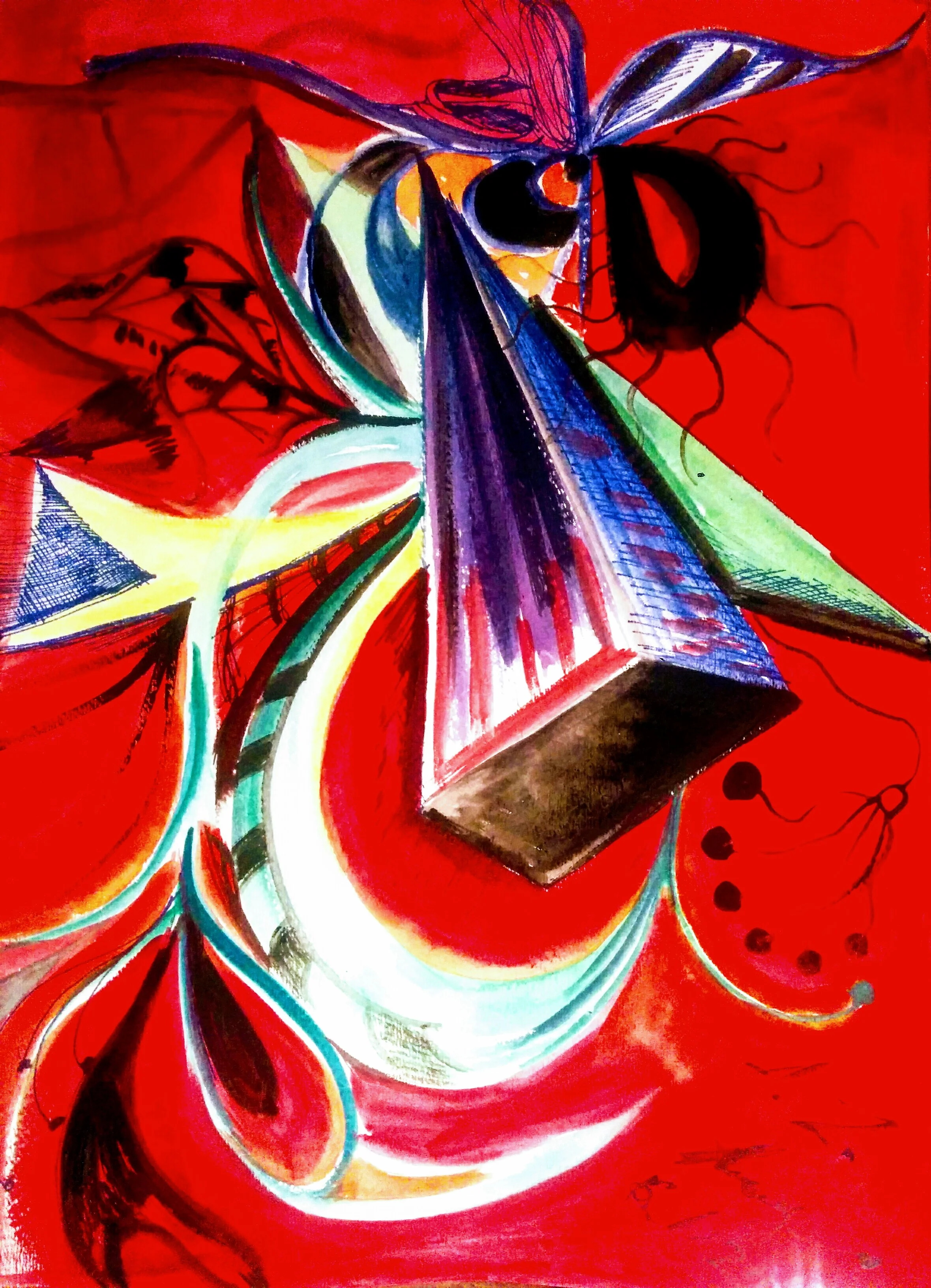 RED SUN, Water Colour, Sketch, Avant-Garde, 28cm x 38cm