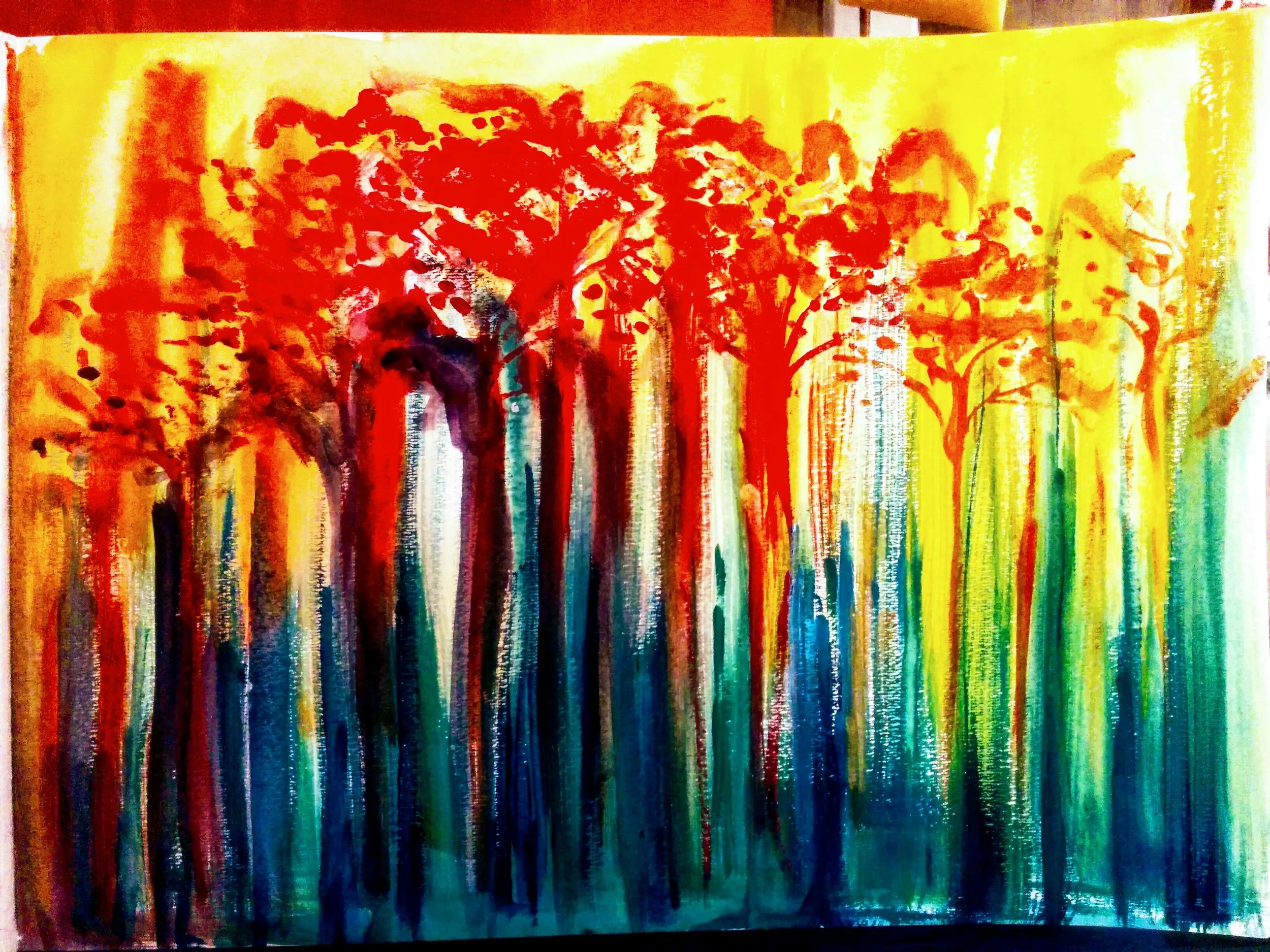 Red Forest, Water Colour, Sketch, Avant-grande, 40cm x 60cm