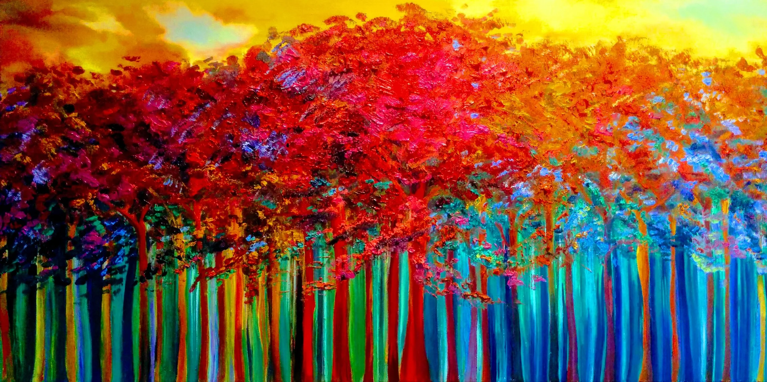 Red Forest, Oil On Canvas, Impressionism, 46cm x 91 cm